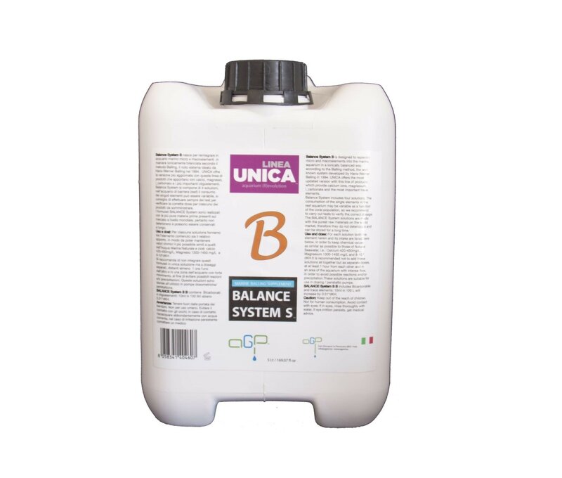 Balance System Snasce per reintegrare in acquario marino micro e macroelementi in maniera ionicamente bilanciata secondo il metodo Balling, il noto sistema ideato da Hans-Werner Balling nel 1994. UNICA offre la versione pi aggiornata con questa linea di prodotti che apportano ioni calcio, magnesio, i_carbonato e i pi importanti oligoelementi.