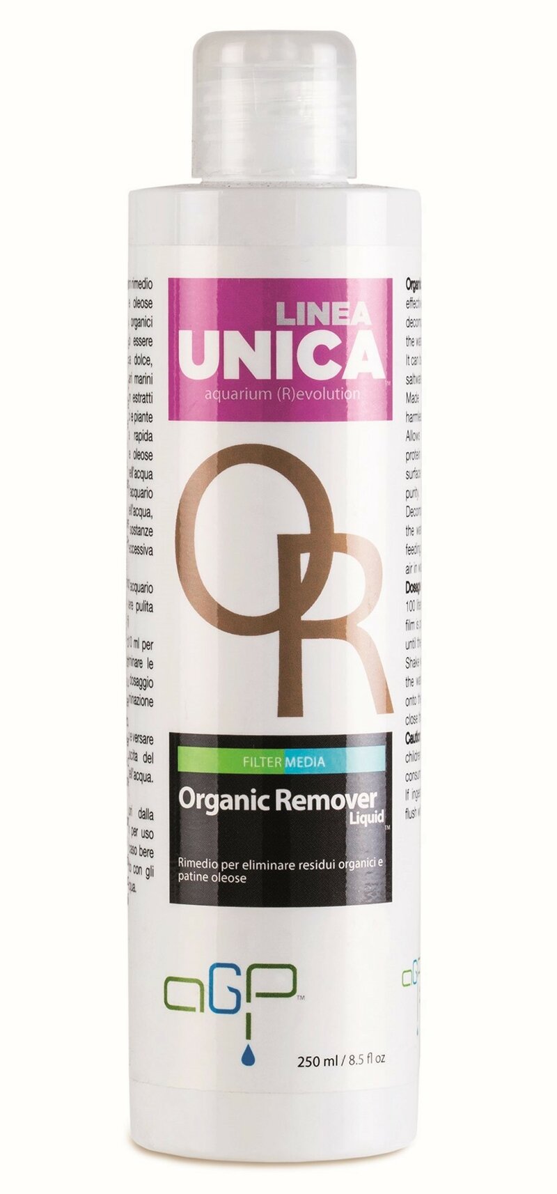 Organic Remover Liquid un rimedio efficace contro le patine oleose e per eliminare i residui organici presenti in acquario. Pu essere usato in acquari dacqua dolce, acquari con piante, acquari marini e di barriera. Prodotto con estratti naturali, innocuo per pesci e piante acquatiche. Permette la rapida decomposizione di patine oleose e sostanze proteiche nellacqua e sulla superficie dellacquario ripristinando la purezza dellacqua, inoltre decompone le sostanze organiche derivanti da eccessiva somministrazione di cibo. Favorisce lareazione dellacquario e contribuisce a mantenere pulita lacqua.